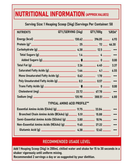 Each scoop provides a premium mix of fast-absorbing whey isolate and concentrate, ensuring your muscles receive essential nutrients right when they need them most — especially after intense training sessions. The high protein content promotes faster recovery, better performance, and enhanced muscle building, making it a perfect choice for athletes, gym-goers, and fitness lovers.